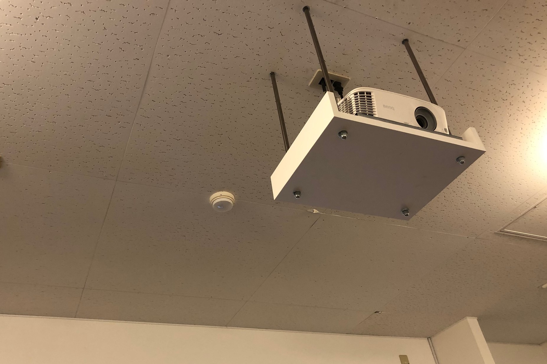 問題は、どこまで手を加えるか、です。着手しようとするとあれこれ気になる箇所が増えていきます。まず、これまで台の上に平置きしていたプロジェクタ。これについてはスペースの確保を優先し、天井吊りにしました。すっきりしていい感じです。
